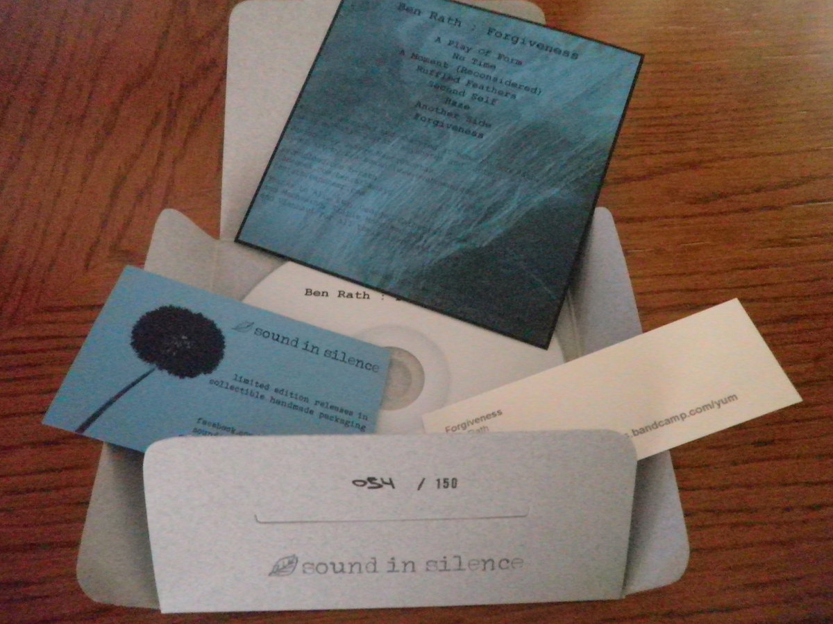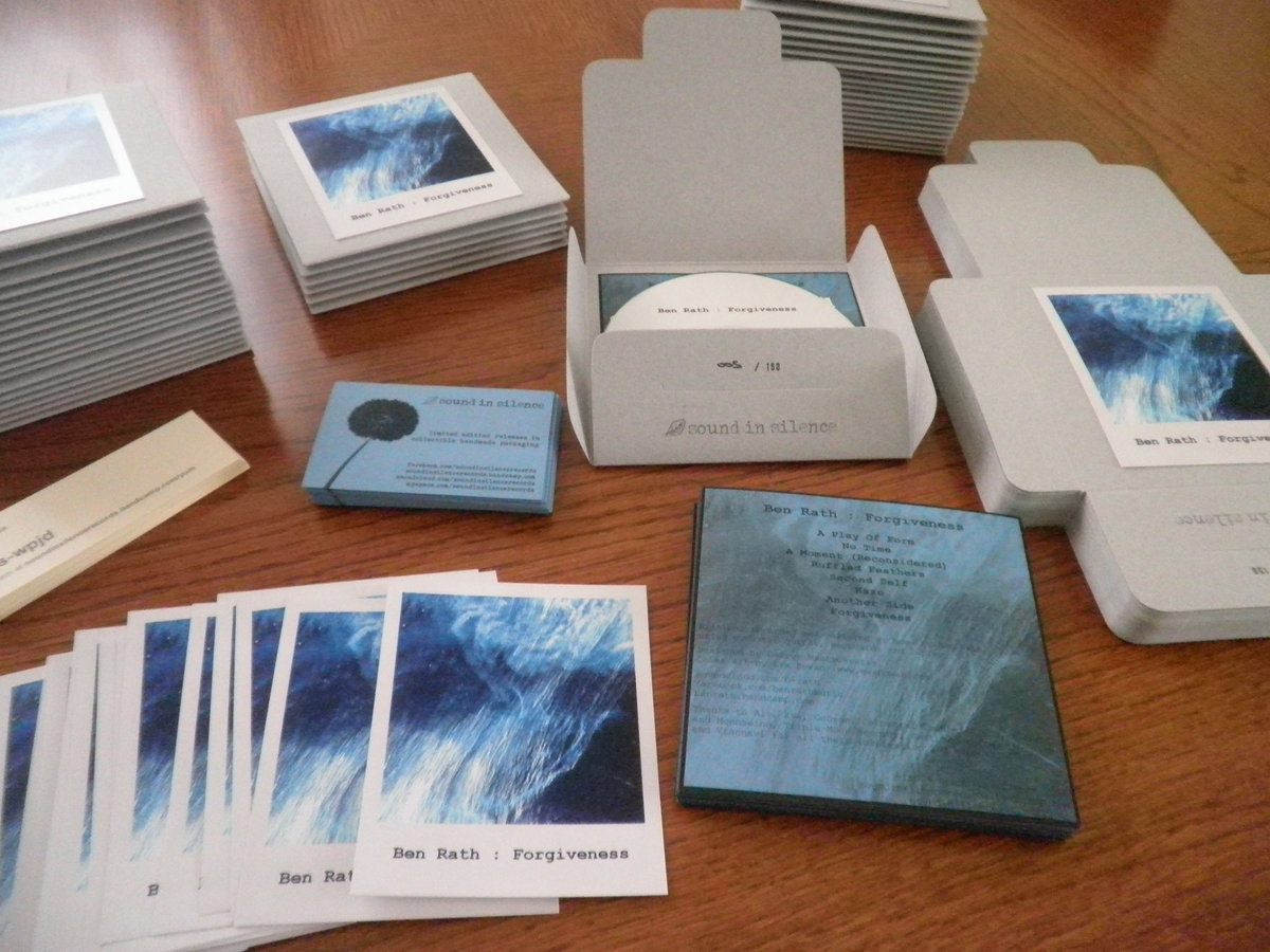 This is a limited edition of 150 handmade and hand-numbered collectible copies. It is packaged in a lovely hand-stamped 127mm x 127mm 240 gsm grey cardboard envelope with the front cover image printed on a polaroid style photo paper and an insert with the tracklist and the credits printed on a 160 gsm light blue cardboard. It also comes bundled with a download code coupon and a Sound In Silence card.